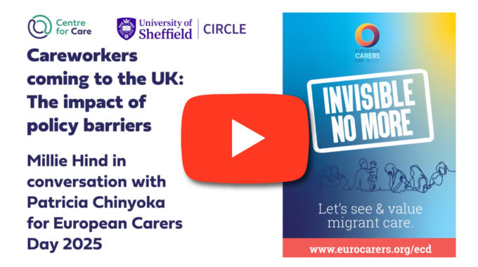 In this podcast by the Centre for Care and the University of Sheffield, one of their PhD students, Millie Hind, speaks with Patricia Chinyoka, founder of Women of Zimbabwe. They discuss the barriers and inequalities faced by migrant care workers coming to the UK, particularly focussing on recent changes to UK immigration policy, especially the ban on migrant workers bringing dependants with them to the UK.